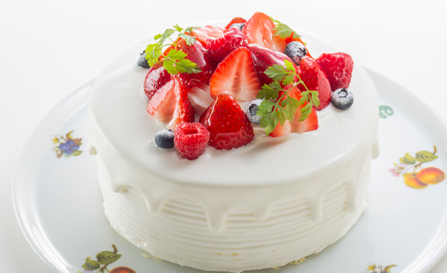 プレーンのジェノワーズとチョコレートのジェノワーズをチョコクリームでサンドしました。苺とバナナのトッピングもチョコとの相性はぴったり。